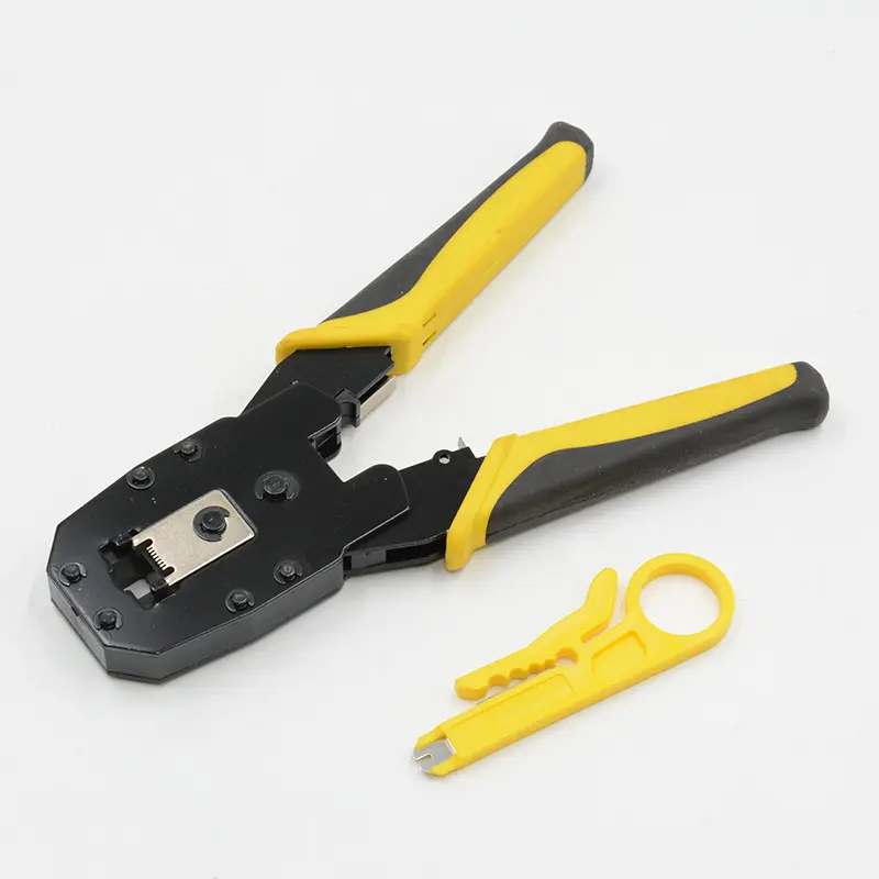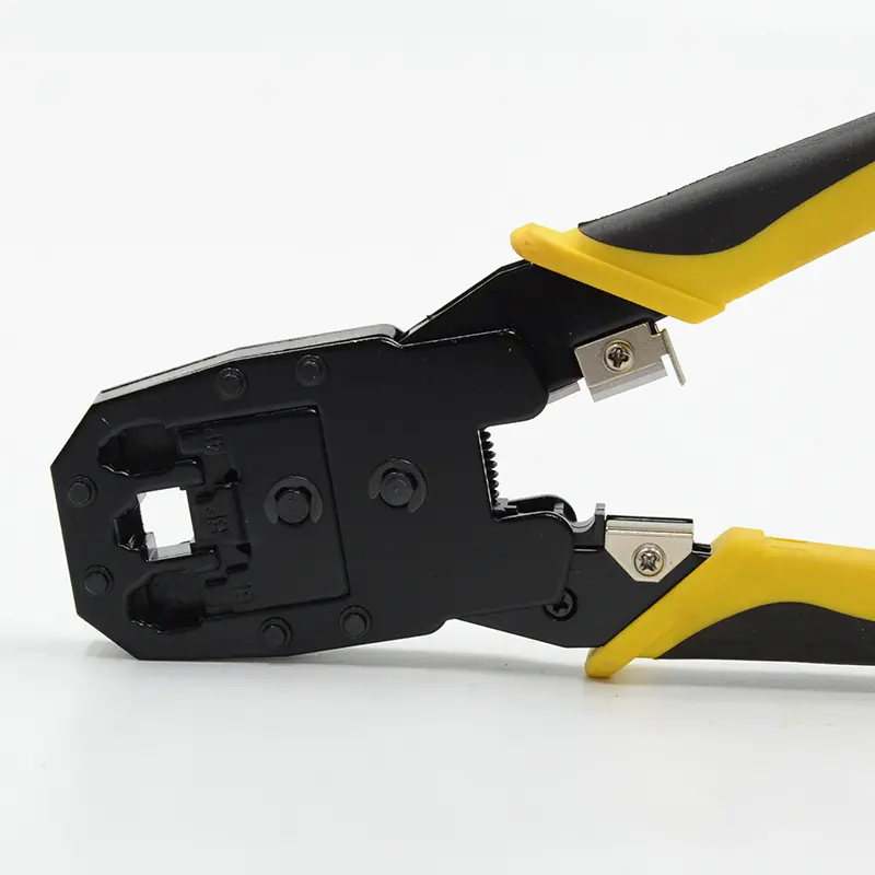 Las crimpadoras modulares 3 en 1 permiten cortar, pelar y crimpar. Son compatibles con conectores modulares RJ45 8P8C, RJ12 6P6C, RJ11 6P4C, 4P4C y 4P2C, todo en una sola herramienta. Compatible con cables redondos y planos.