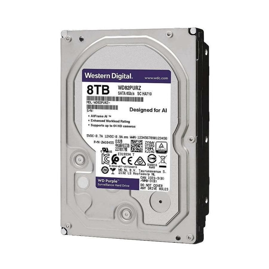 Disco Rigido Western Digital Purple 8TB. Recomendado para Grabadores de video. Diseñado para bajo consumo, lectura y escritura secuencial. NO se recomienda su uso en computadoras de escritorio ya que el random access es más lento, provocando que la lectura aleatoria de archivos baje su performance. Venta solo en conjunto con grabadores XVR y NVR.